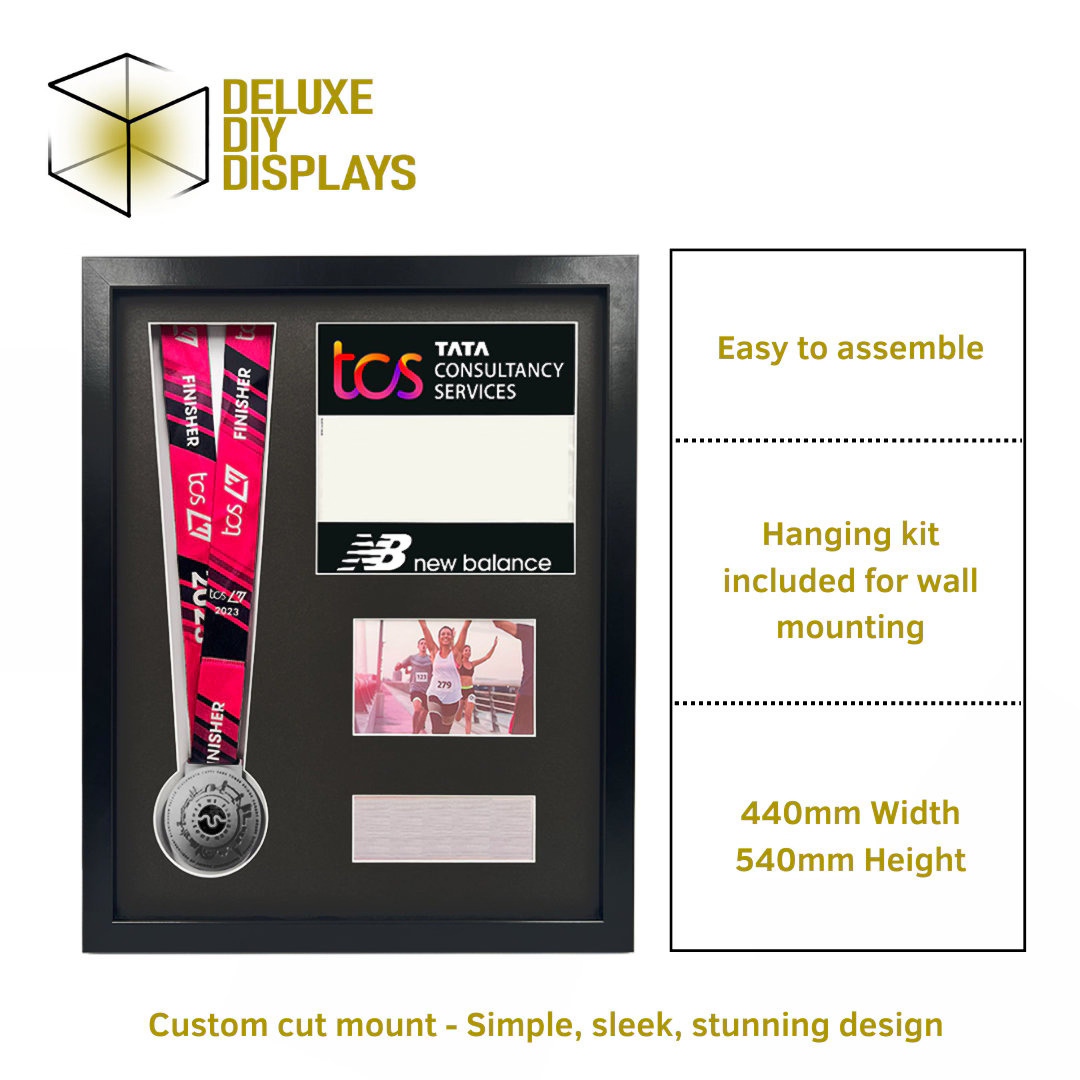 An aesthetically pleasing way to display your 2023 London Marathon Medal and Race Number.
