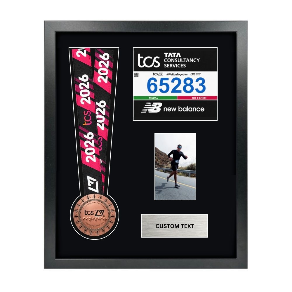 An aesthetically pleasing way to display your 2026 London Marathon Medal and Race Number.