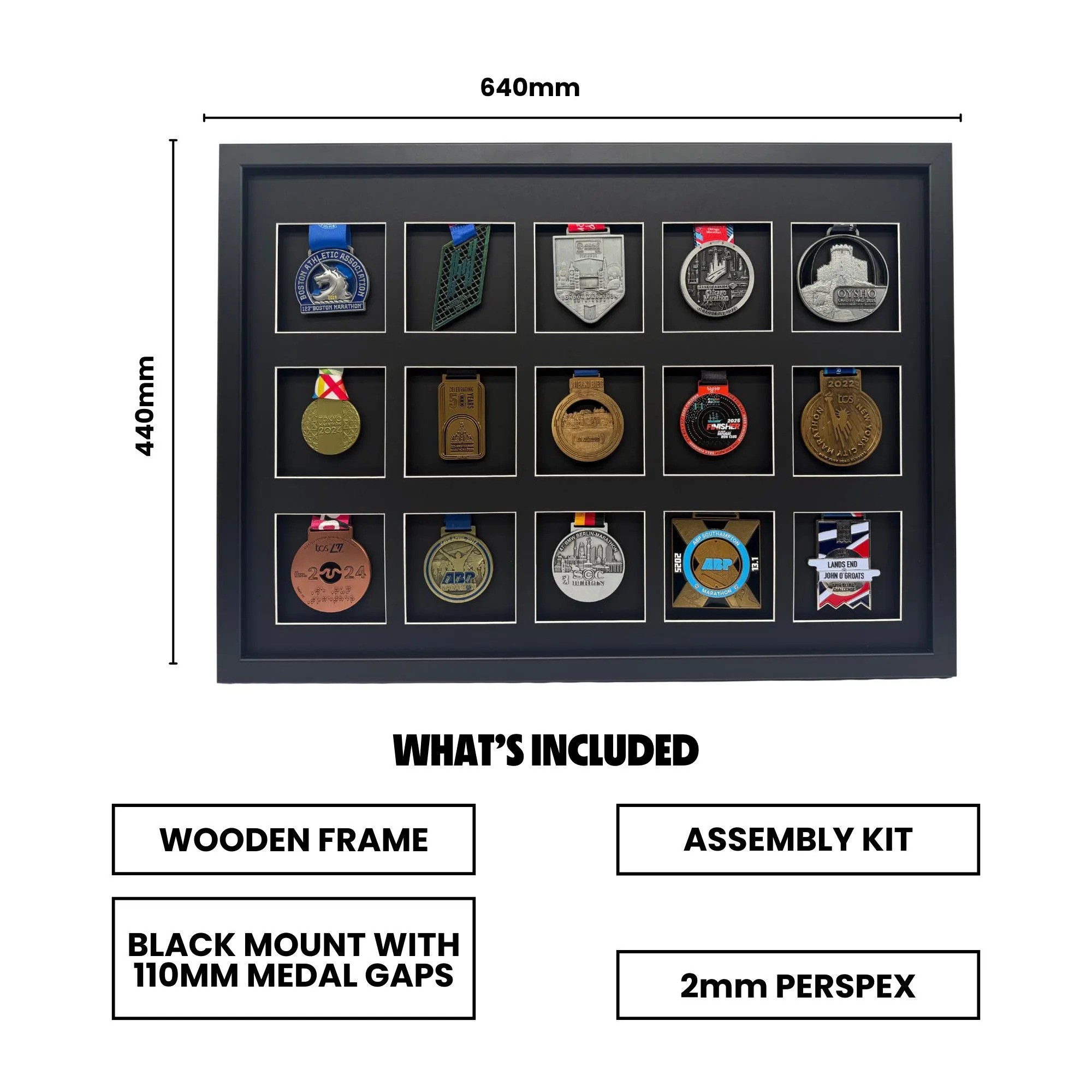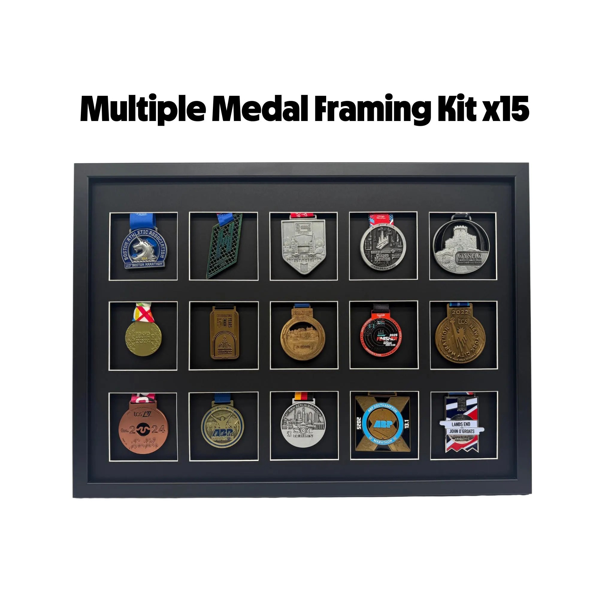 An aesthetically pleasing way to display x15 Medals in one frame.
